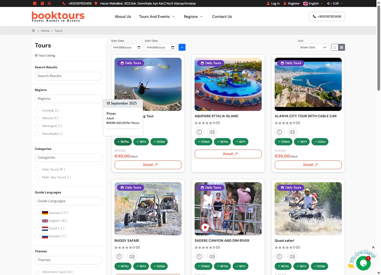 Farklı kategorilerde turlar oluşturulabilir, fiyatlandırma yapılabilir ve rezervasyon sistemi entegre edilmiştir.