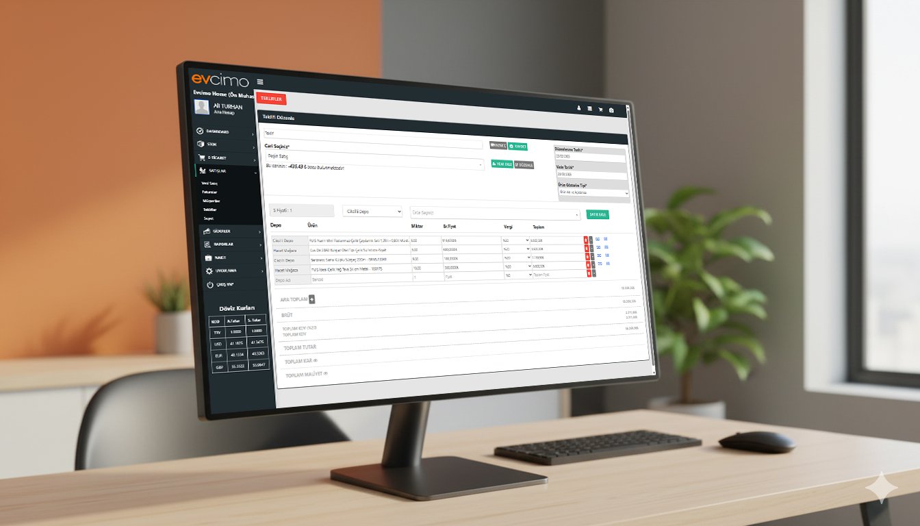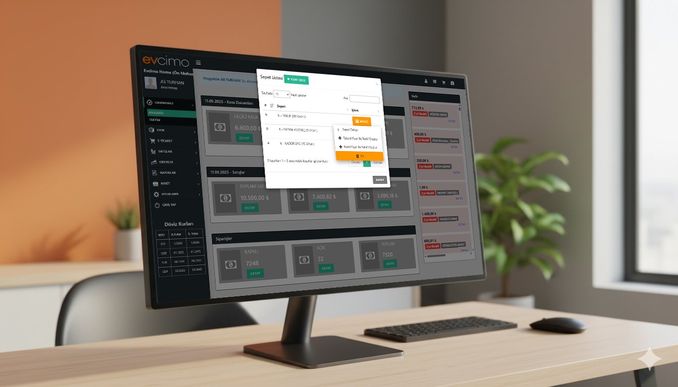 Evcimo Tech İşletme Yönetimi ile stok, cari, kasa ve e-ticaret süreçlerinizi tek platformda yönetin. E-ticaret entegrasyonu ile tam çözüm!