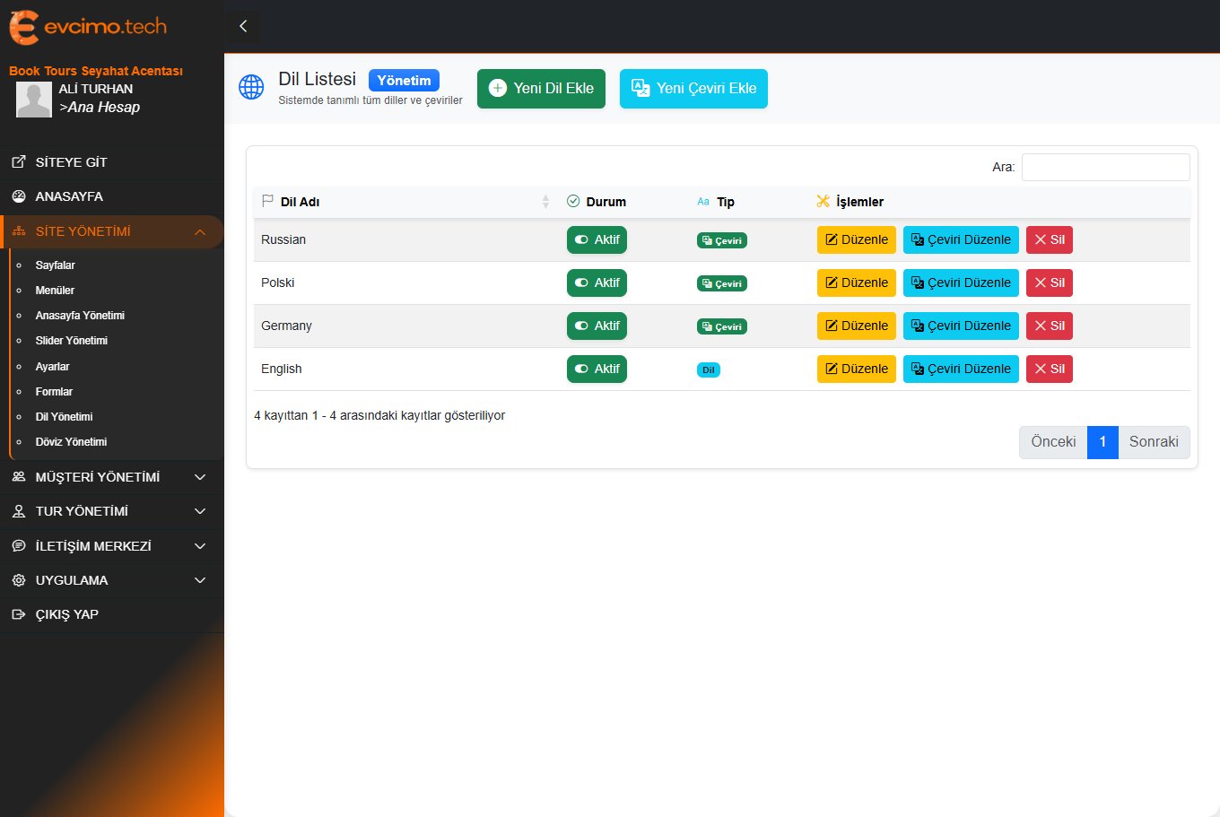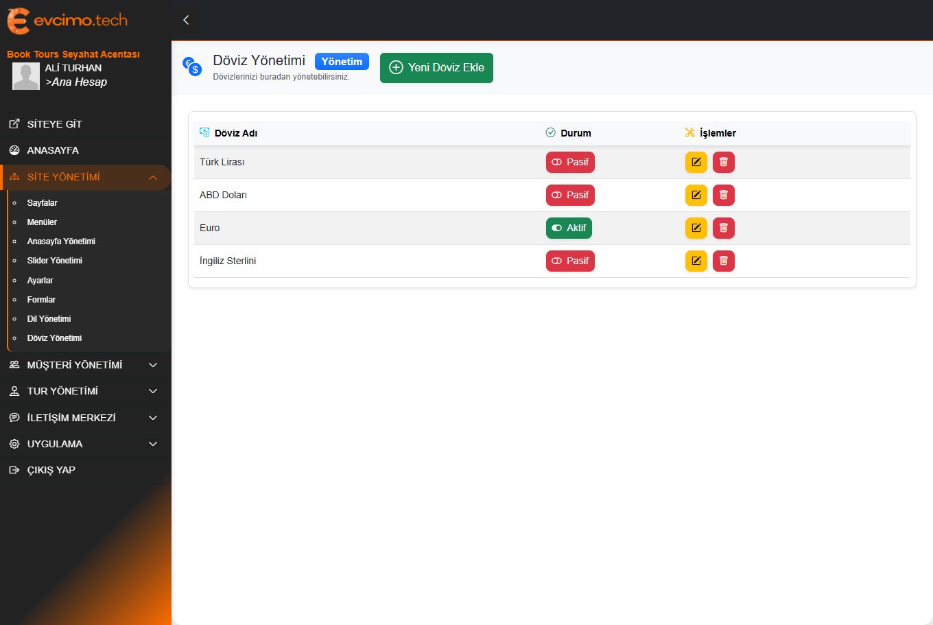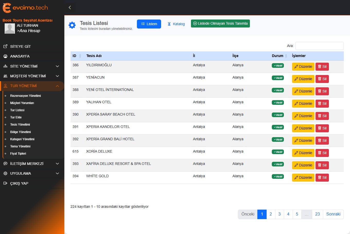 Evcimo Tech Tur Yazılımı ile turlarınızı organize edin, rezervasyonları yönetin ve müşteri memnuniyetini artırın. 1 saat içinde başlayın!